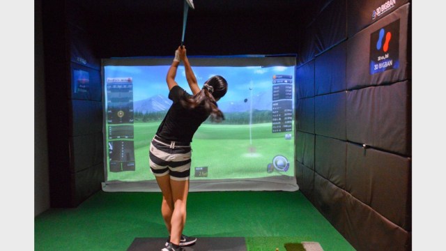 施設も全打席がシミュレーションゴルフでショット映像も出て、傾斜の練習ができます。