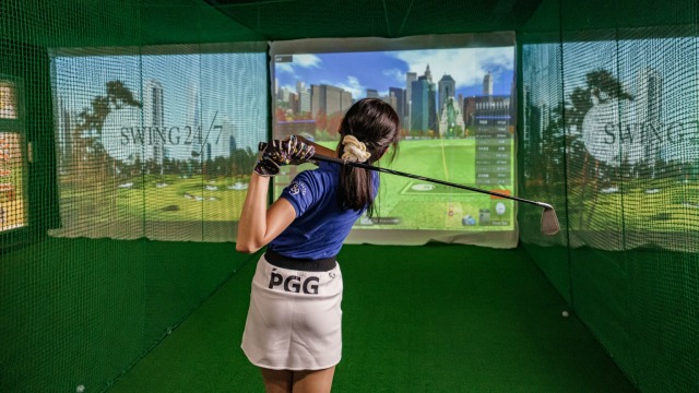 ゴルフシミュレーター、スイング分析機完備。自身のフォームが都度確認できます。