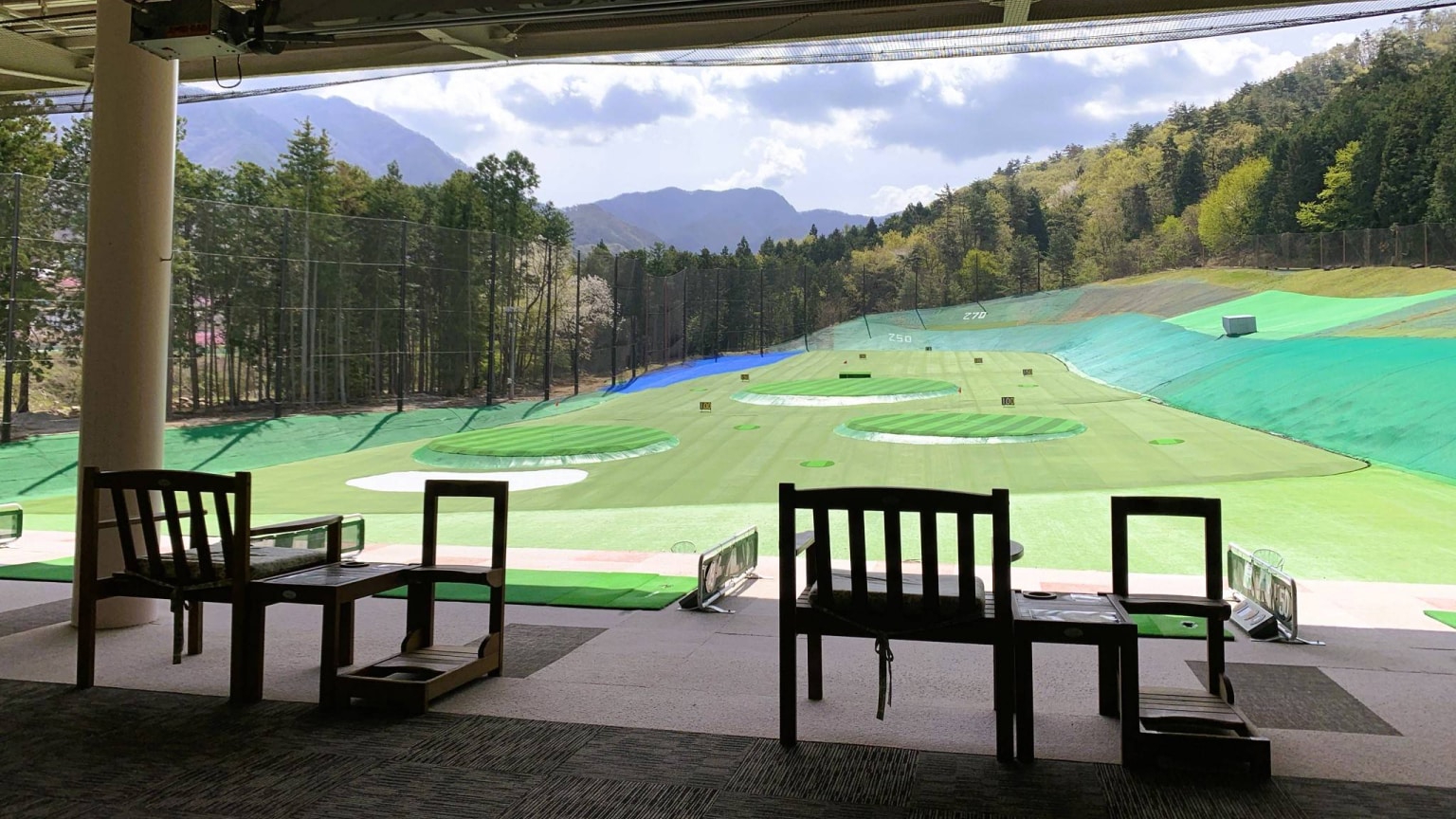 自然に囲まれた280ヤード超のゴルフ練習場。PGA認定プロによる ゴルフレッスン。