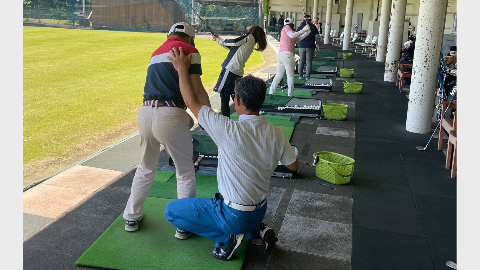無かったので見せて貰ってからコーチに基本的なスイングを教えて貰いました。