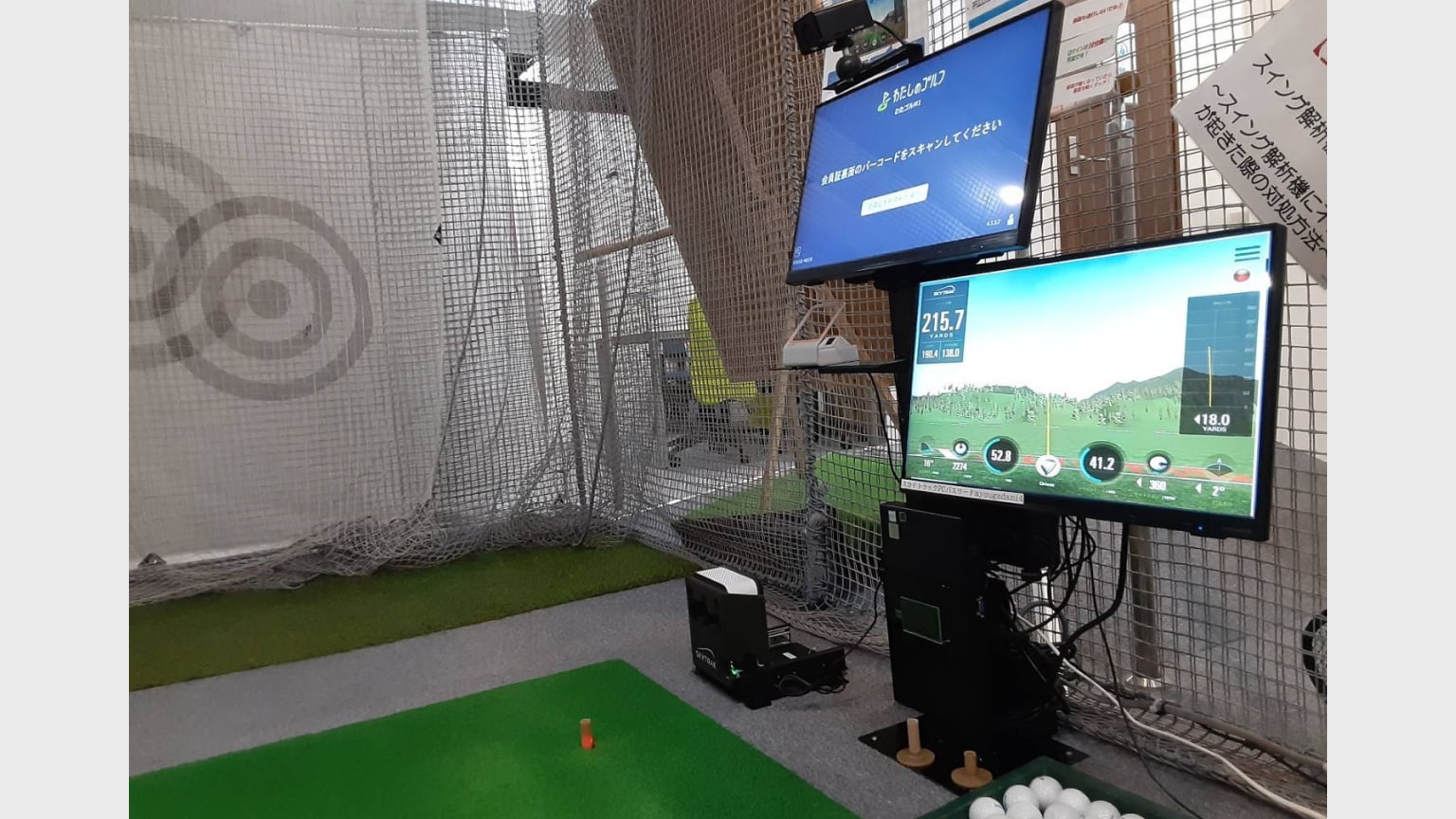 また、全打席弾道測定機設置で、インドアでも打球の方向性、飛距離やスイングスピード等を正確に知る事ができます。