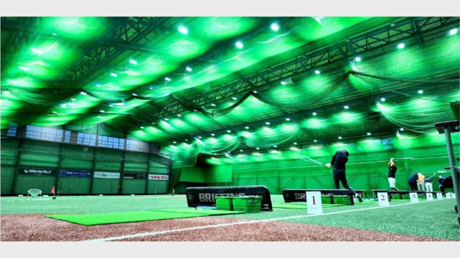 完全室内・冷暖房完備でどんな天候の日でも快適な環境ながら、シミュレーションでは味わえない広々した空間で本格的な練習をお楽しみいただけます。