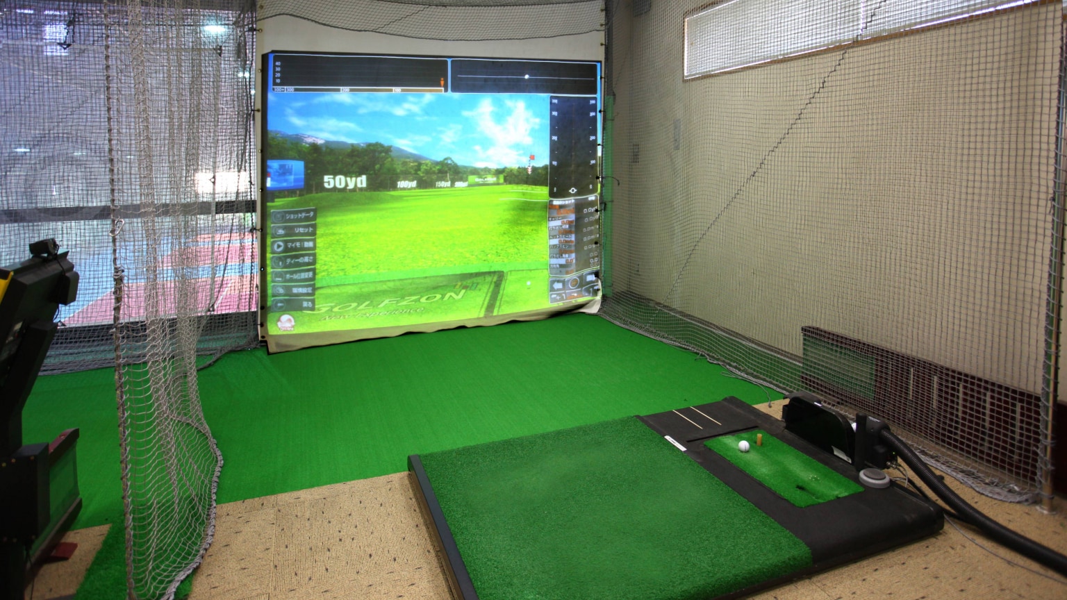 シミュレーション打席も設置しているので、キレイなスイング作りだけではなく、インドアでは分かりづらいボールの行方と飛距離が1球ごとに確認できます。練習場モードからコースモードにスイッチすれば、コースを擬似体験しながらの練習も可能です。